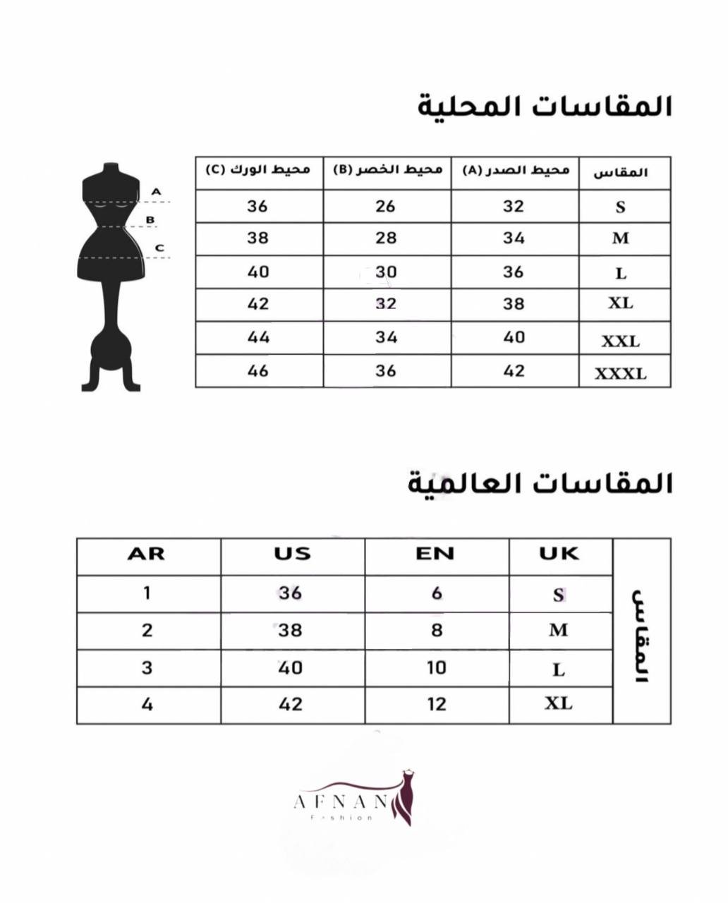 المقاسات قد تُكتب بالارقام ✅S = 1 =