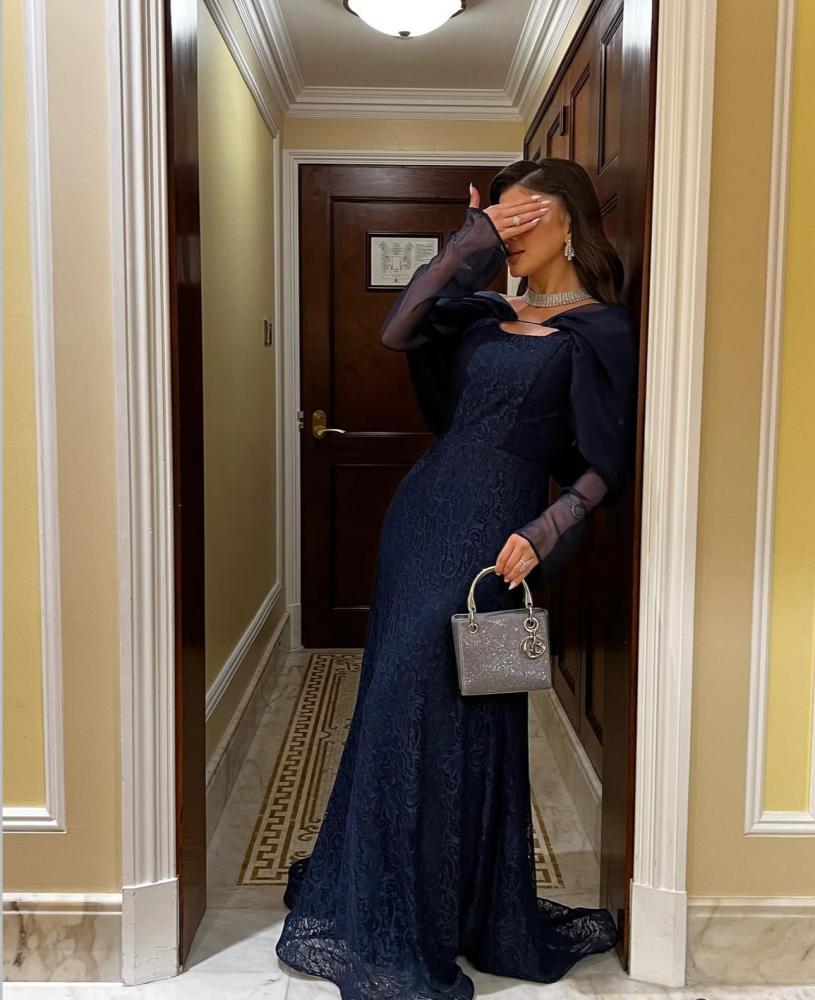• اللون: أزرق كحلي داكن، مما يجعله خياراً مثالياً للمناسبات المسائية والسهرات الرسمية