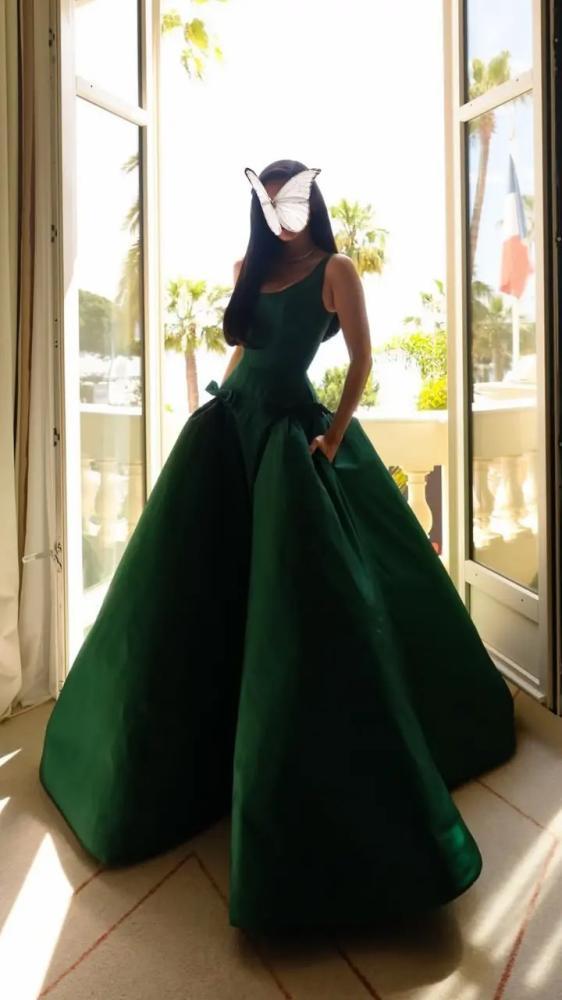 • اللون: أخضر زمردي داكن أو "Forest Green"، لون غني وجذاب، مع تطريزات لامعة تضفي عليه بريقاً